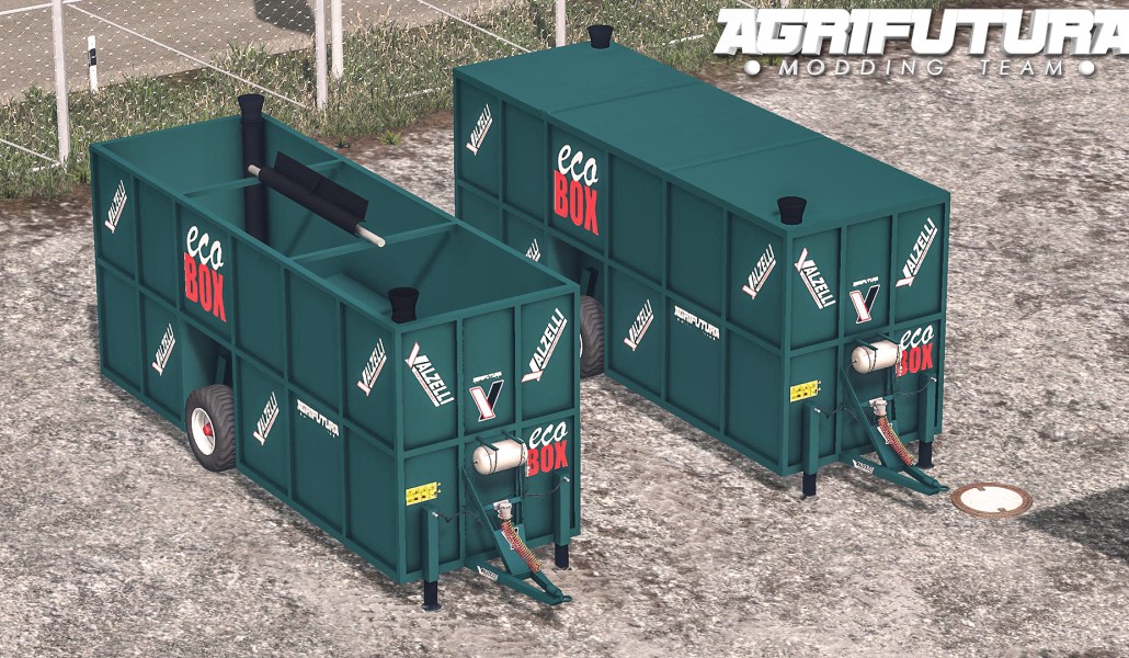 This is Valzelli Ecobox, an italian container trailer. Model and textures has been completely designed for FS15 by me, partner with AgriFutura Modding Team.
