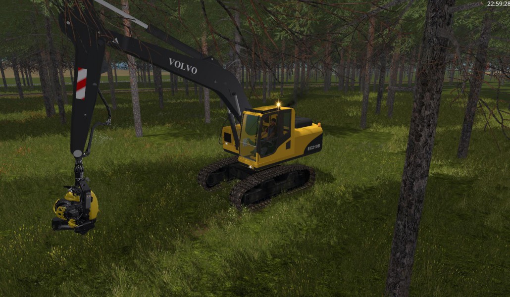 Volvo 210B excavator with a tree cutting head.