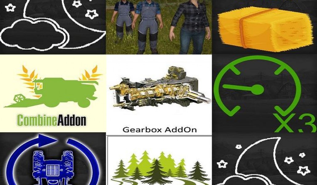 This script adds on the basis of the file gearboxAddonConfig.xml a gearbox to all configured tractors. Many various transmission kinds can be simulated. There are classic gearboxes with gears, one or two groups and reverse gears or groups. Shorting the response time to zero will result into a power shift transmission.