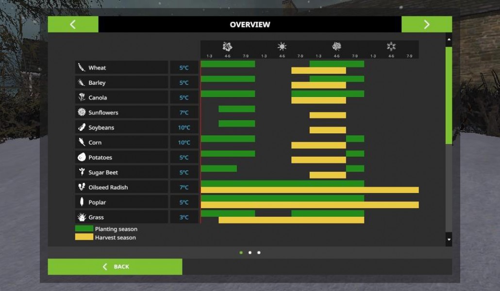 The Seasons mod mění základní způsob, jak hrát Simulátor zemědělství tím, že zavede roční období a mění všechny aspekty hry, jako je počasí, růst, ekonomika, údržba vozidel a chovatelství.