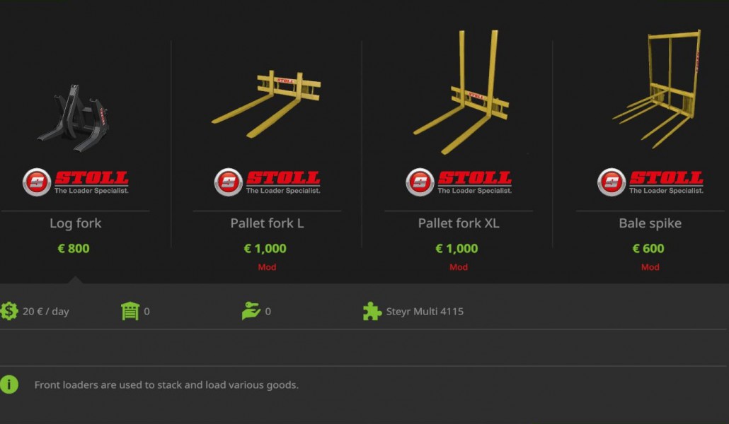 1 bale fork, per Config the number of bale pies can be selected and UAL got the bale fork as well