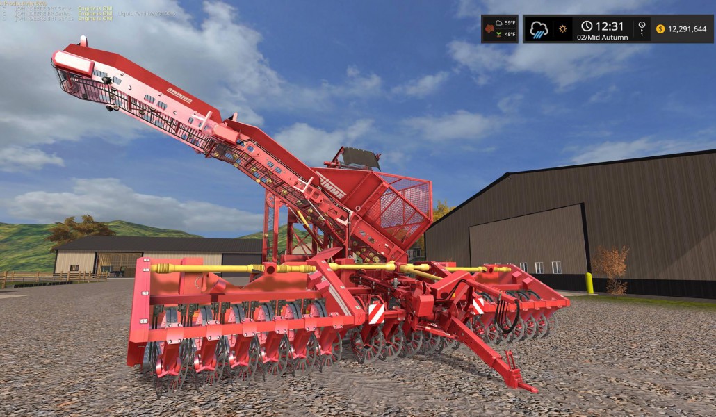 Grimme 18 row Sugar beet harvester. One of the first mods I did. Tried to convert the one from FS15 but failed so I rebuilt it using the FS17 in game version. Have gone through many updates and improvements. I am not able to figure out the scroller for top section of elevator. Now has dynamic hoses and also tweaked the unloading particles a bit. Enjoy & Happy Farming!
