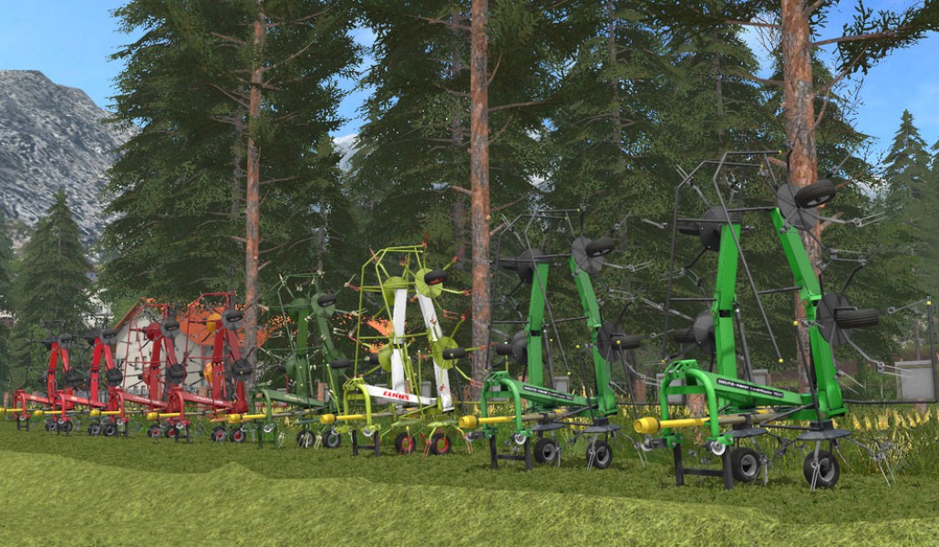 Balení obracečů ve čtyřech soustruzích značek Deutz, Claas, Krone, Pöttinger a Vicon s označením typu Condimaster 7621, KW 6.72 / 6, HIT 610 N a Fanex 763 vorhanden. Odbočovače jsou identické a mají se svými 6 rotory pracovní šířku od 7,60 metrů! Hmotnost je 890 kg, takže je možné použít obraceč s menšími traktory.