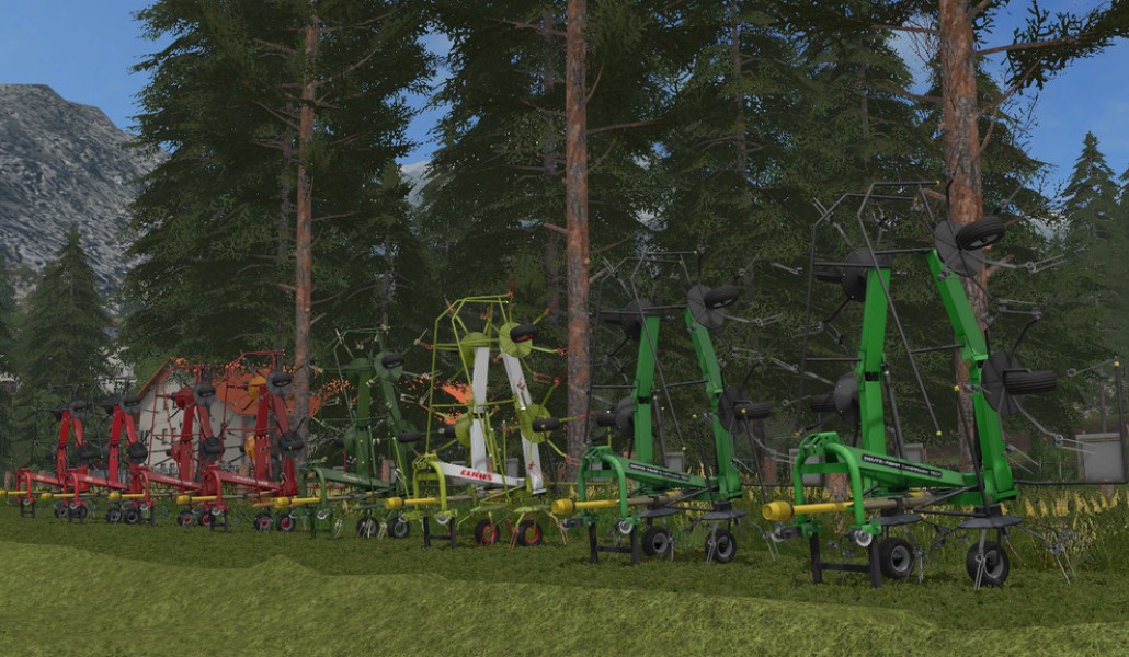 A Tedder Pack in the 4 Turners of the brands Deutz, Claas, Krone, Pöttinger and Vicon with the type designation Condimaster 7621, KW 6.72 / 6, HIT 610 N and Fanex 763 vorhanden. Die reversers are identical and have with their 6 rotors a working width from 7.60 meters!