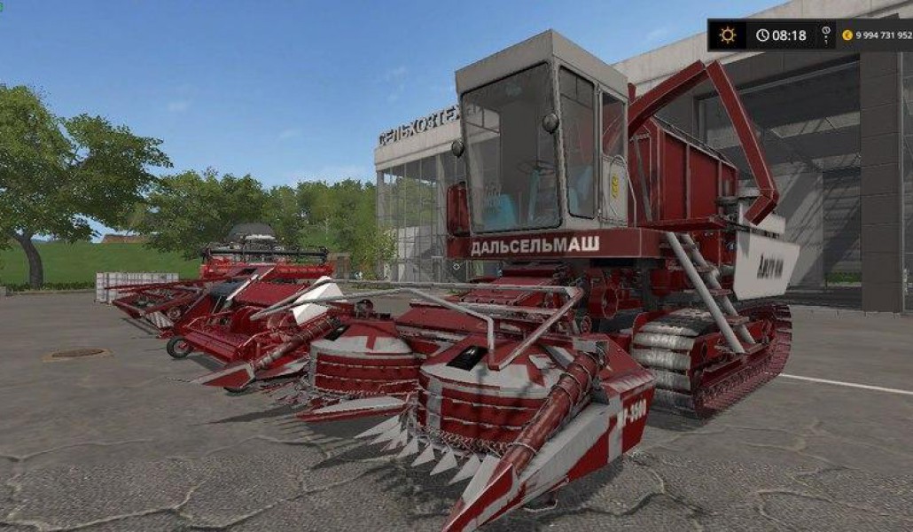 Self-propelled self-propelled harvester on a caterpillar track with a storage hopper, manufactured by the Dalselmash plant with a set of cutters from Dalselmash and RSM.