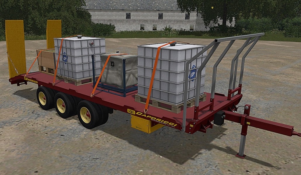 Caporicci FC260CR trailer for transport crawler tractors and bales - three axles and twin wheels - total capacity 200 Quintals Weight 5.900 kg - Length 9m - Width 2.50m - selectable automatic loading or manual loading - the pack contains 2 models: 1 FC260CR transport round bales and 1 Fc260CR transport square bales.