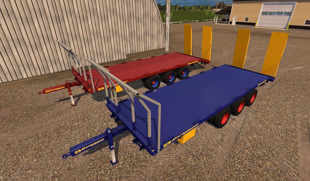 Caporicci FC260CR trailer for transport crawler tractors and bales - three axles and twin wheels - total capacity 200 Quintals Weight 5.900 kg - Length 9m - Width 2.50m - selectable automatic loading or manual loading - the pack contains 2 models: 1 FC260CR transport round bales and 1 Fc260CR transport square bales.
