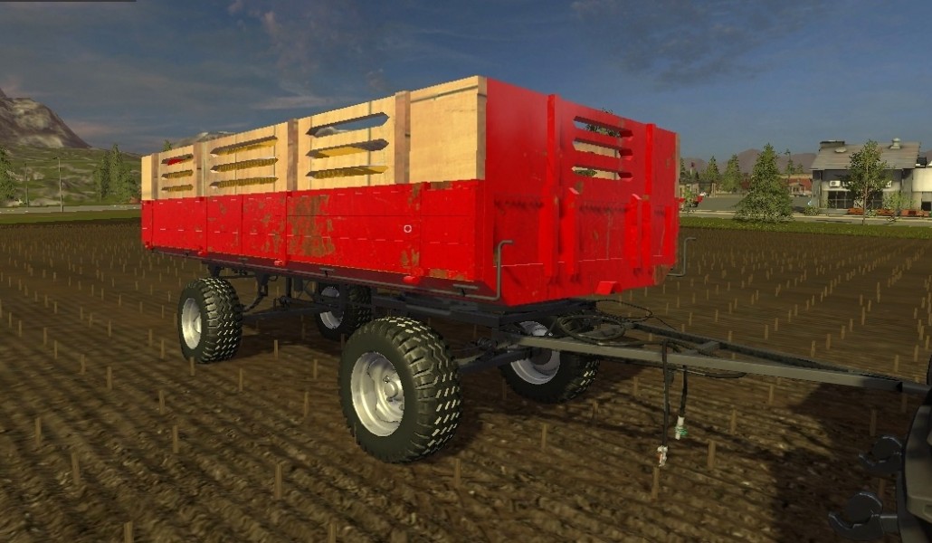 DUBRAVA 8T trailer, according to my red color design with wooden pages, version 1.0, possibility of autoload bales, pallets etc., half body, tire change