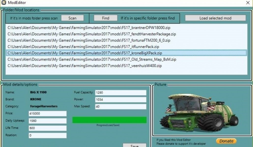 With this tool you can easly change your mod's settings like price, daily upkeep, etc. It's very easy to use just scan, edit and save, that's all it takes.