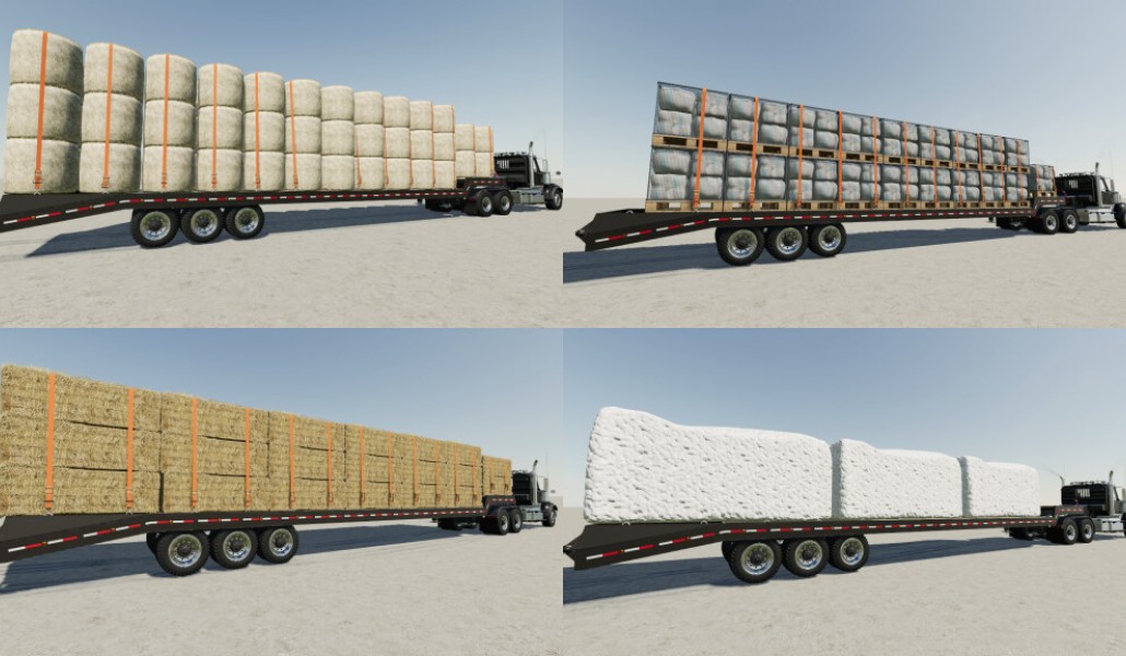 - Can carry 40 square bales (stacked 3 high), 74 round bales (stacked 3