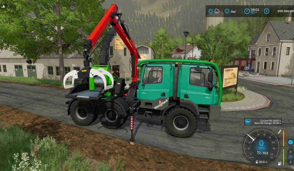 For towing tree trunks, there is a side-mounted 4-ton winch.