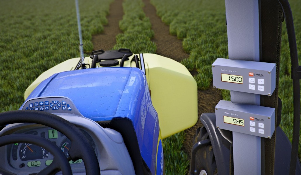 The ME Mueller Elektronik Display Prefab displays the fill level of attached implements or trailers on the vehicle.