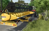 The Lizard pivoting header trailer allows for easy transportation and attachment of combine harvester headers on roads and in fields.