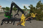 With sawbuck you can cut trees to different sizes. With delimber you can remove tree branches from trees you cut down. It can be used for loading logs on trailer as well.
