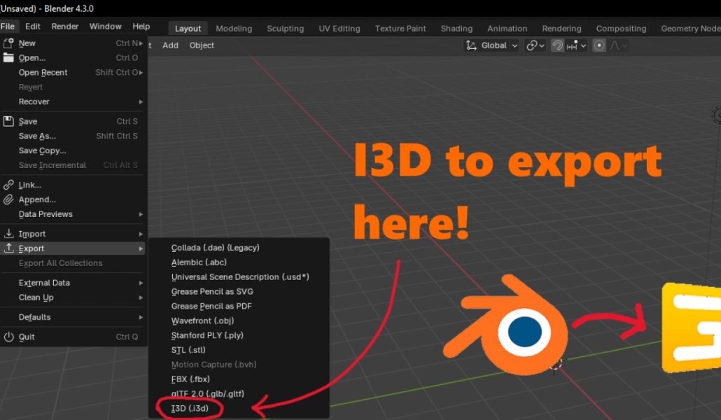 Old version of the I3D exporter for Blender 4.3 (Unofficial).