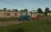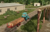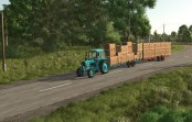This machine is designed for loading fruit packed in containers, transporting them from between the rows of trees, and delivering them to storage and processing facilities for subsequent unloading.